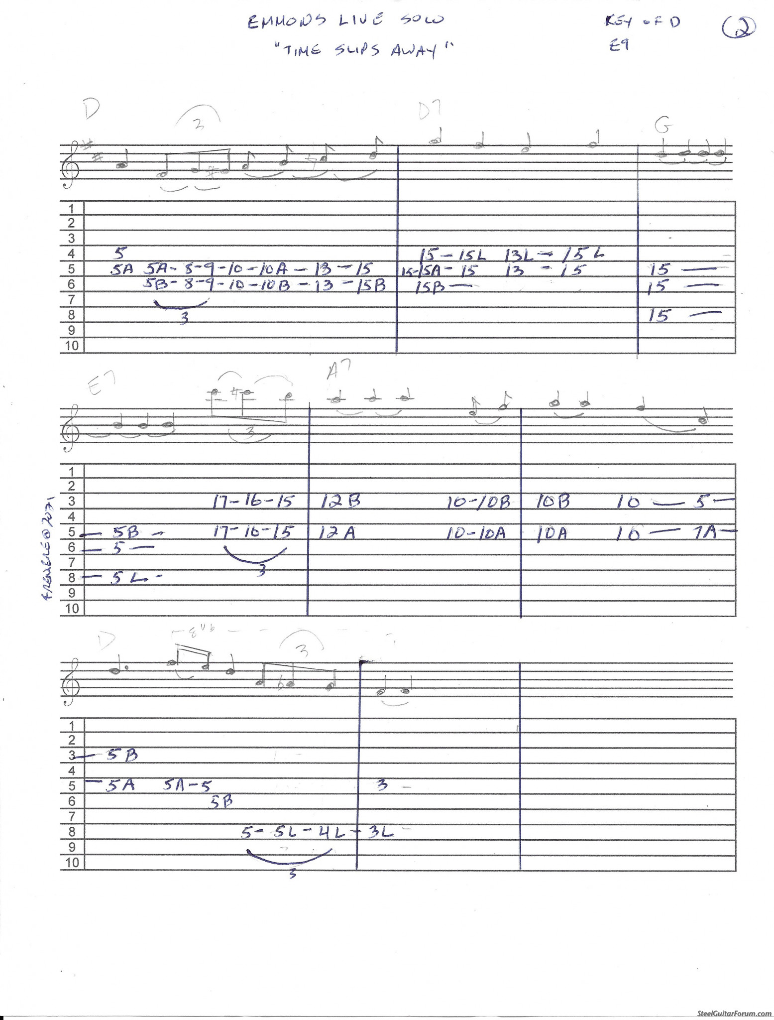 Written music for steel guitar